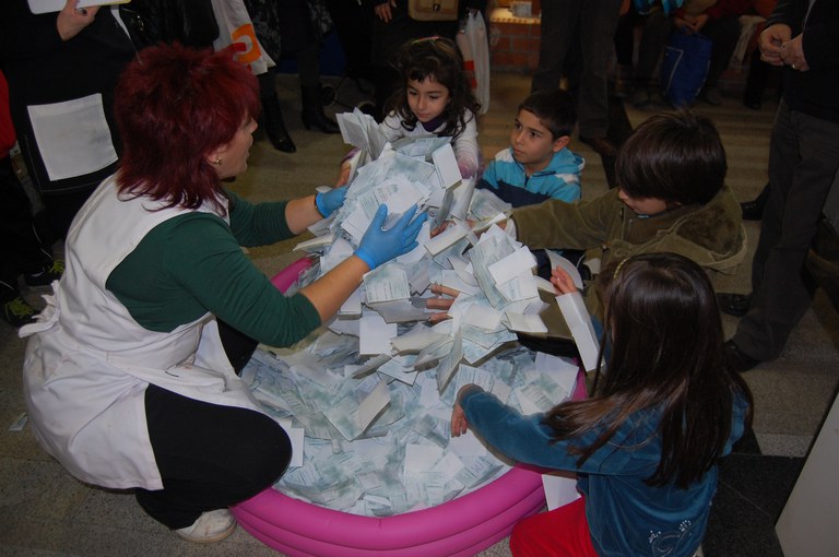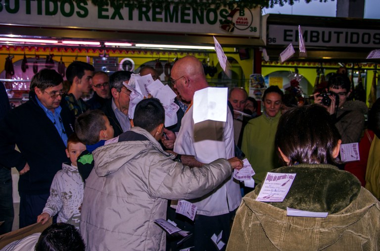 Fotos 1 i 2: Sorteig de l'Associació de Concessionaris del Mercat Nou. El regidor de Comerç, Joan Fandos, va ser-hi present als dos sortejos.