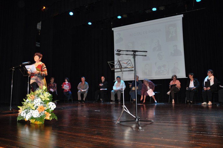 El taller de poesia de l'Escola d'Adults Jaume Tuset va oferir al Teatre Auditori un recital polètica dels autors més destacats de la història de la poesia nacional i internacional. Lorca, Machado, Benedetti i, especialment, Salvador Espriu van ser alguns dels poetes escollits.