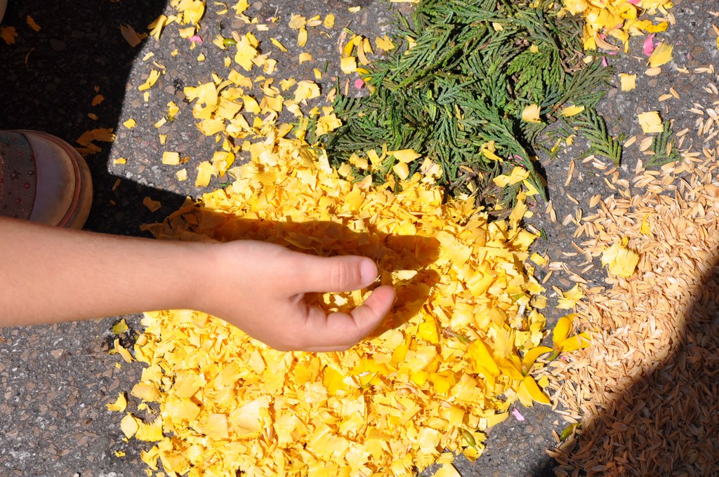 A partir de les 12 ja es podien visitar, pels carrers del nucli antic, les catifes de flors. Enguany, s'en podia veure una dedicada a l'agermanament de Ripollet amb la població francesa d'Avrillé.