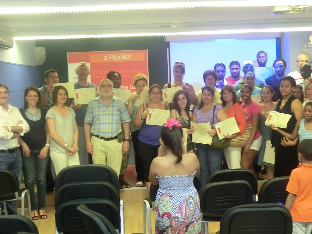 El passat dijous, 18 de juliol de 2013, es van lliurar els diplomes dels cursos que desenvolupa Creu Roja fruit del conveni signat amb l'Ajuntament de Ripollet per a la realització de cursos de Coneixement de l'entorn i del curs d'Auxiliar de la llar i manipulació d'aliments, adreçat principalment a les persones nouvingudes del municipi. A més, es van fer entrega dels diplomes a les persones que havien cursat català inicial i castellà inicial. L'acte va ser presidit per la regidora de polítiques d'Igualtat, Mª del Mar Viera i el president de la Creu Roja, Cerdanyola-Ripollet-Montcada, Francesc Roset de la Iglesia, i hi van assistir unes cinquanta persones. Van recollir el diploma un total de 42 participants.