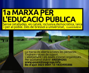 El proper dijous 29 d'agost Ripollet rebrà els participants de la 1a Marxa per l'Educació Pública. Els participants seran rebuts cap a dos quarts de dues a la rotonda del carrer de Sant Jaume amb el carrer de Montcada. Des d'allà la comitiva es dirigirà a El Local on faran un dinar. A dos quarts de sis de la tarda es dirigiran a la plaça de Pere Quart on es farà una concentració i posteriorment sortiran cap a Cerdanyola del Vallès.