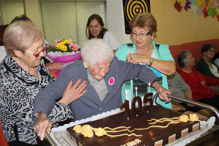 Envoltada dels seus familiars propers i dels seus amics i amigues del Centre de Dia de Can Vargas, la senyora Hermínia ha celebrat aquesta setmana el seu 105 aniversari. L'Hermínia, que encara té energia per apagar les espelmes del seu pastís d'aniversari, va rebre tot l'afecte dels seus familiars més propers, a més de la visita de l'alcalde de Ripollet, Juan Parralejo i la regidora de Serveis Socials, Maria Lladó.