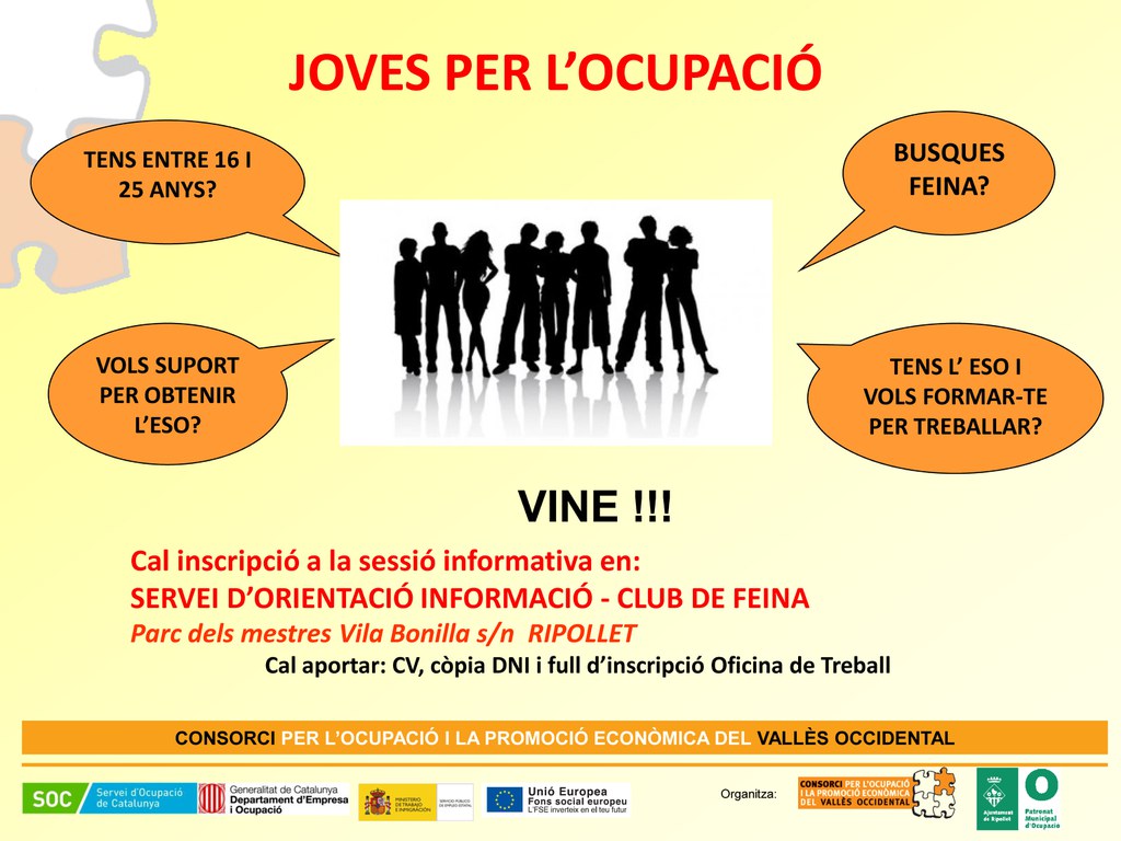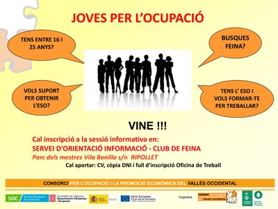 El Consorci per l'Ocupació i Promoció Econòmica del Vallès Occidental (COPEVO) està portant a terme, amb la col·laboració de 17 municipis de la comarca, entre ells Ripollet, la implementació del programa 'Fem Ocupació per a Joves', impulsat pel Servei d'Ocupació de Catalunya i cofinançat pel Fons Social Europeu. El projecte s'inicia amb la contractació del jove en una empresa de la comarca durant mínim 6 mesos, temps durant el qual rep en paral·lel una formació adequada al lloc de treball, que és impartida des del Copevo. Aquest projecte parteix de les necessitats de les empreses, s'inicia amb la contractació de sis mesos amb jornada parcial del jove, les empreses poden acollir-se a una bonificació econòmica del contracte dels participants. Els joves reben una acció formativa relacionada amb la seva contractació, els àmbits formatius seran: Anglès Comercial i de Gestió, Comunnity Manager, i Serveis Audiovisuals. Per seleccionar als joves s'estan realitzant sessions informatives i entrevistes individuals per a la recerca d'un total de 40 joves a la comarca , entre 3 i 5 places previstes per a Ripollet, adreçades a joves de 18 a 30 anys amb ESO, batxillerat o CFGM i inscrits com a demandants d'ocupació en l'Oficina de treball.