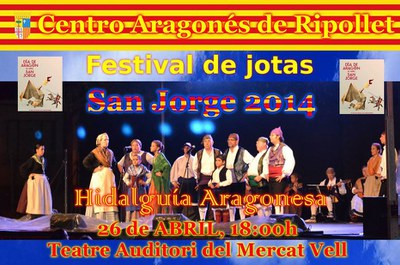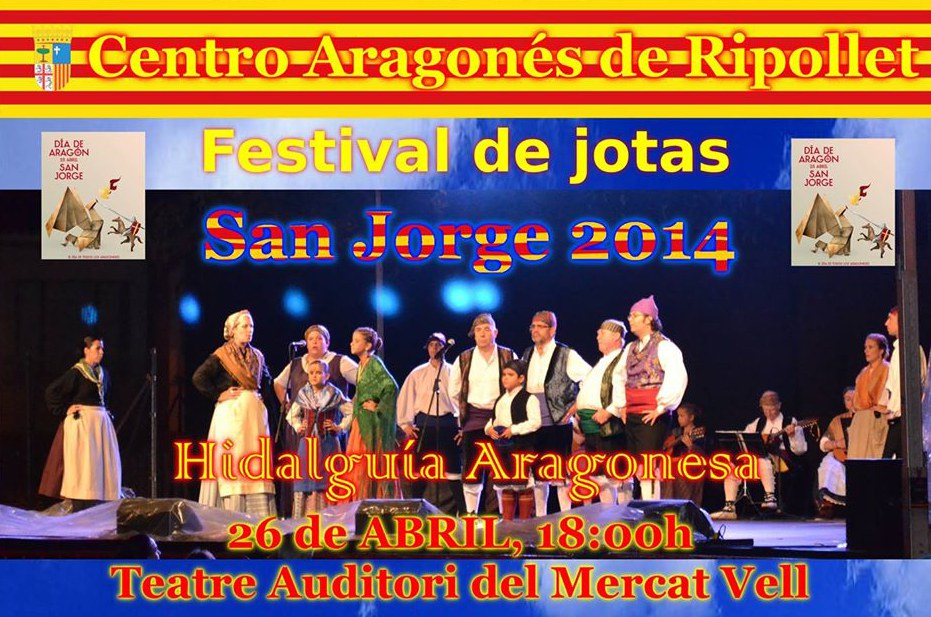 El Centro Aragonés de Ripollet commemora San Jorge, patró d'Aragó, amb un seguit d'activitats el cap de setmana del 26 i 27 d'abril. Enguany, el popular festival de jotas anirà a càrrec del grup Hidalguía aragones i tindrà lloc dissabte 26, a les 18 h, al Teatre Auditori.