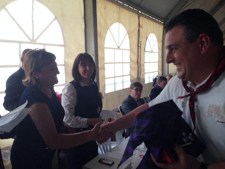 El president del Centro Aragonés de Ripollet, Marcos Gayán, va tenir l'oportunitat de lliurar a Miguel Ángel Gil, cap del servei de les comunitats aragoneses a l'exterior del govern d'Aragó, la samarreta que la delegació local portava a la concentració. Gayán va rebre, de la mà de la presidenta de la Diputació de Terol, un record commemoratiu de la trobada.