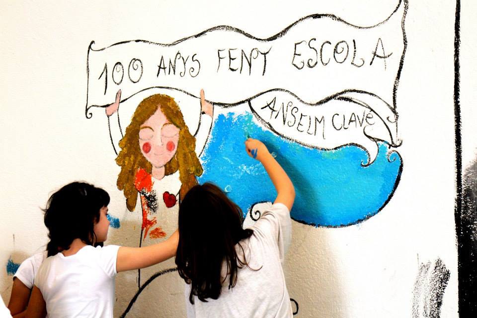 Un gran mural, realitzat per la pintora Alba Martínez amb l'ajuda d'alumnes i mestres de l'Anselm Clavé presideix el pati de l'escola, tot recordant els seus 100 anys d'història. El 23 de maig alumnes i mestres van fer classe durant el matí vestits i en les mateixes condicions que ara fa 100 anys. A la tarda, les famílies es van sumar a la festa, acompanyades pels Gegants de Ripollet. Tots junts van gaudir d'un berenar antic.