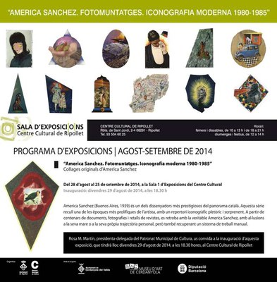 Coincidint amb l'inici de la Festa Major de Ripollet, el proper divendres, 29 d'agost, s'inauguraran dues mostres al Centre Cultural. D'una banda, a les 18.30 hores, obrirà les portes América Sánchez. Fotomuntatges Iconografia Moderna 1980-1985, amb collages originals d'América Sánchez (pseudònim de Juan Carlos Sánchez). A les 19 hores serà el torn de En blanc, una mostra d'obres de l'Escola d'Arts Plàstiques de l'Ateneu de Cerdanyola del Vallès.
