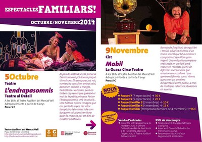 L'espectacle està adreçat a infants a partir de 6 anys i tindrà lloc a les 18 hores, al Teatre Auditori. El preu de l'entrada és de 5 euros, tot i que existeixen diferents paquets d'abonaments. A més, hi ha un 25% de despcompte per a persones amb dicapacitat, joves amb carnet d'estudiant o menors de 16 anys i persones en situació d'atur (consulteu les dades a la segona imatge d'aquesta notícia).