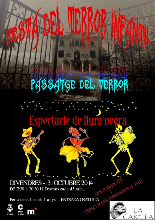 El grup local de teatre de La Careta ha preparat diverses activitats per fer passar a grans i petits una estona de terror, coincidint amb la celebració de Tots Sants. Divendres, 31 d'octubre, La Careta Teatre celebrarà la Festa del Terror Infantil, per a infants fins a 11 anys. El Centre Cultural serà l'escenari de dos espectacles. D'una banda, un passatge del terror per als més atrevits, i d'altra banda, un espectacle de llum negra. Es realitzarà de 17.30 a 20. 30 hores (amb descans dels actors i actrius cada 45 min.). A més, hi haurà paradetes i espectacles al Pati del Centre Cultural.