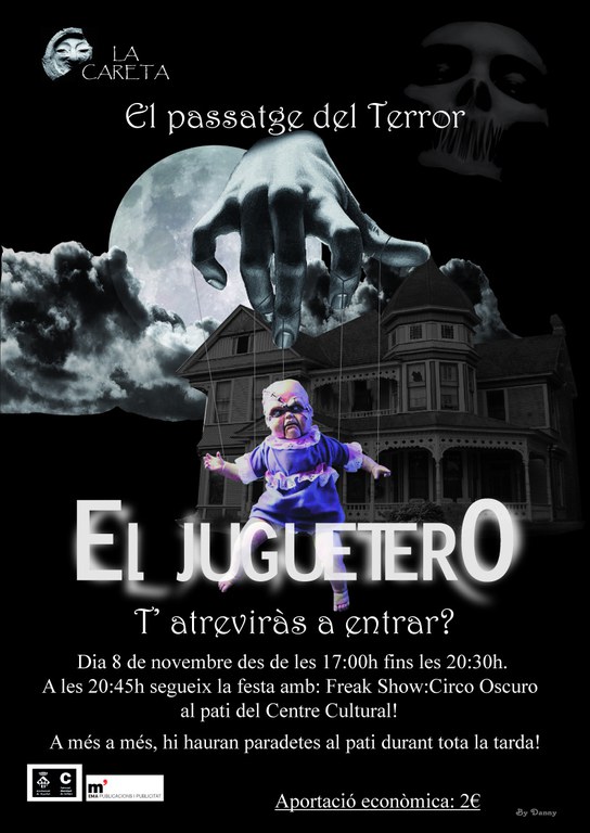 Dissabte, 8 de novembre, La Careta Teatre celebrarà la Festa del Terror dels Adults, tota el títol 'El Juguetero'. El Centre Cultural es convertirà en una antiga botiga de joguines, on el seu propietari va desaparèixer per raons desconegudes... De 17 a 20.30 hores es podrà gaudir del Passatge del Terror i a les 20.45 h., al pati del Centre Cultural, començarà l'espectacle 'Freak Show: Circo Oscuro'. També hi haurà paradetes i altres espectacles durant tota la tarda al pati del Centre Cultural. Totes les activitats són gratuïtes, amb excepció del passatge del terror 'El Juguetero', on cal fer una aportació de 2 euros per persona.