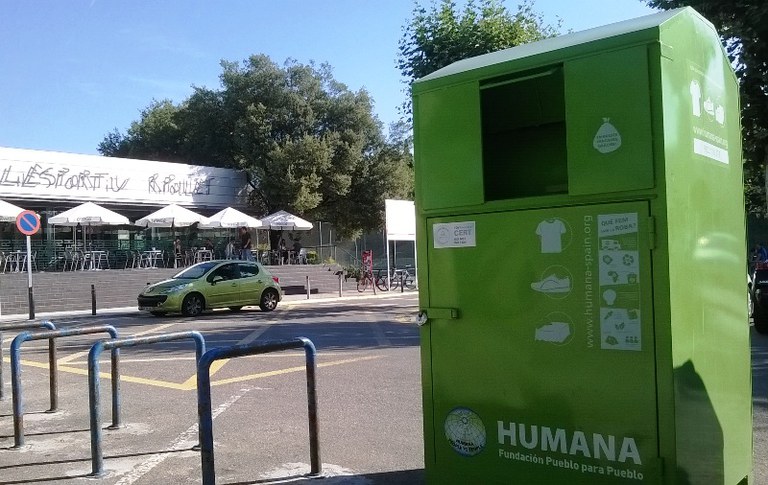 Els veïns de Ripollet van reciclar durant l'any passat 19.500 kilograms de roba i calçat usats als onze contenidors que l'organització no governamental per al desenvolupament (ONGD) Humana Fundación Pueblo para Pueblo té instal·lats al municipi. Aquesta quantitat representa un augment del 72% respecte a la xifra obtinguda l'any anterior (11.324 kg). La principal causa d'aquest registre és que els contenidors s'hi van instal·lar al juliol de 2013.