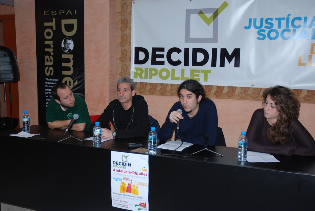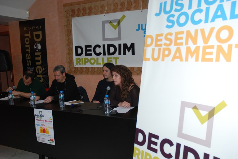 Decidim Ripollet va celebrar el dimecres, 25 de febrer, al vestíbul del Teatre Auditori del Mercat Vell, l'acte de presentació del seu candidat, José María Osuna, plantejat com un agermanament amb la lluita municipalista andalusa. Així, l'acte va comptar amb la presència de Néstor Salvador, militant del SAT, qui va reivindicar la lluita social contra la oligarquia de polítics, bancs i grans empreses. L'acte també va comptar amb les intervencions de Cristina Casamitjana, del COP-CpR i Julio Rua, portaveu de Podemos i membre de Decidim Ripollet.