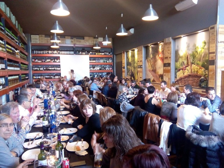Un centenar de comensals van assistir al dinar solidari contra el càncer que es va realitzar el passat diumenge, 1 de març, al restaurant Enovin de Ripollet. D'aquesta activitat, organitzada per la junta local de l'Associació Espanyola Contra el Càncer (AECC), s'han destinat 7 euros de cada menú d'adults i 4 euros de cada menú infantil a la lluita contra la malaltia.