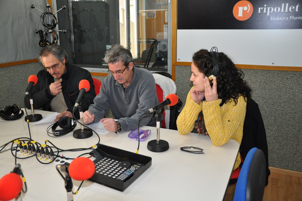 Foto: membres de Podem als estudis de Ripollet Ràdio.