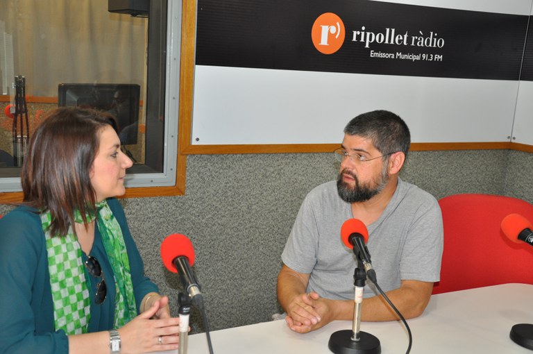 Fotos: Joan Mimó, i Elena Vilalta i Jordi Giménez als estudis de Ripollet Ràdio.