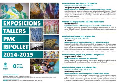 Fins al 29 de maig, la Sala d'Art del Centre Cultural acull l'exposició 'Imagino, imagines, imagina...'. Es tracta d'una mostra col·lectiva que han realitzat els alumnes del Taller de plàstica infantil, que com cada any presenten els treballs que han realitzat en els darrers mesos. La inauguració de l'exposició va tenir lloc el passat 21 de maig.