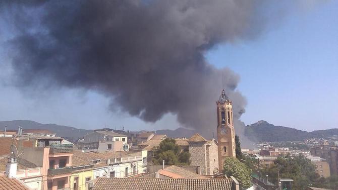 Un incendi crema tres naus industrials i provoca una gran fumera