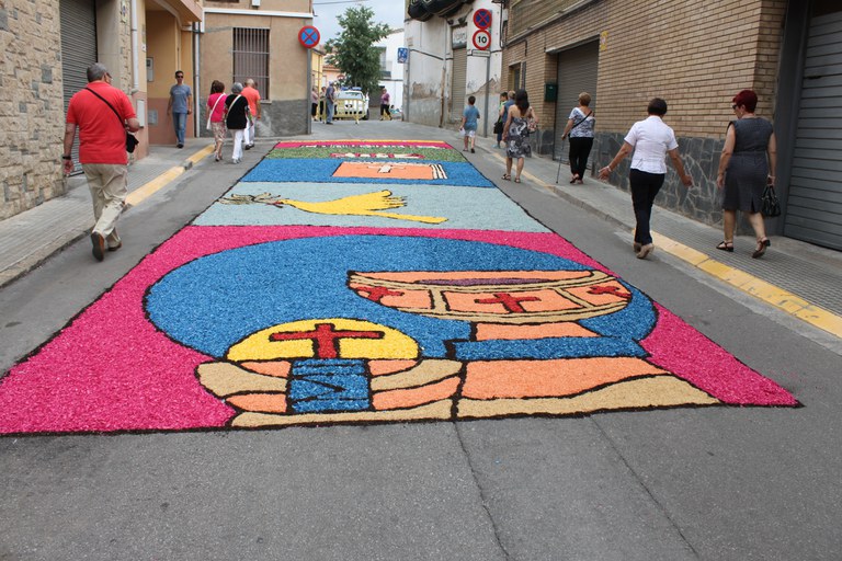 - A les 8 hores, inici de la mostra de catifes florals als carrers del nucli antic. Pot participar-hi tothom que vulgui. A partir de les 12 h i fins a les 20 h es podran visitar les catifes.