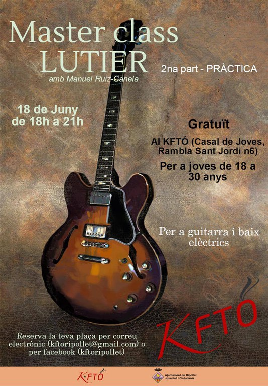 La Regidoria de Joventut i Ciutadania ha organitzat per al 18 de juny la segona Masterclass de lutier, un taller de manteniment de guitarra i baix elèctrics. Serà de les sis de la tarda a les nou del vespre.