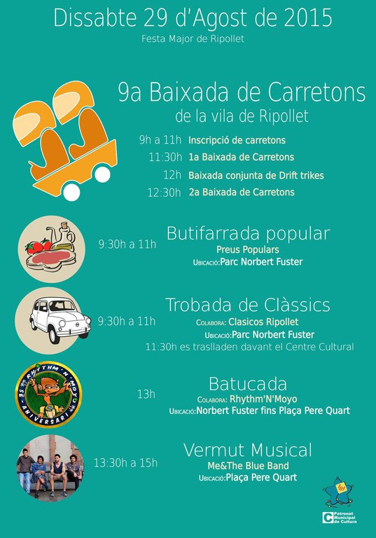 Els carretons participants podran realitzar dues baixades. Entremig de les dues sèries hi haurà una baixada de drift trikes, uns tricicles ideals per a fer derrapades. Durant les baixades hi haurà també la Trobada de Clàssics al parc Norbert Fuster. Els vehicles s'exposaran a partir de dos quarts de dotze del migdia davant el Centre Cultural i fins a la plaça Font.