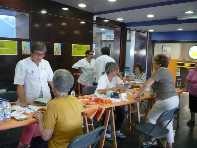 La Regidoria de Salut Pública i el personal d'infermeria del CAP I i del CAP Pinetons de Ripollet van realitzar dimarts, 16 de juny, al vestíbul del Mercat Municipal un taller de prevenció emmarcat dins la campanya 'Planta cara a la calor'. Les infermeres van mesurar la pressió arterial, a més de facilitar consells sobre hidratació, foto protecció i activitat física.