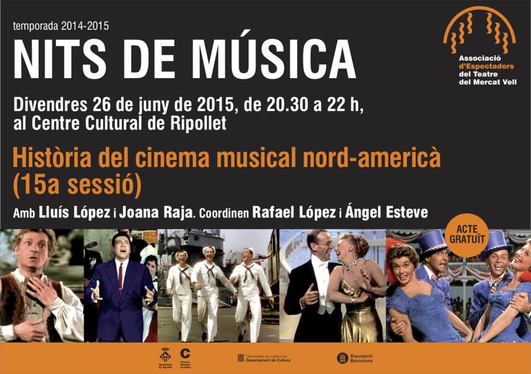 El Centre Cultural acollirà aquest divendres, 26 de juny, la quinzena edició de les Nits de Música, aquest cop dedicada al cinema musical nord-americà de l'any 1949. L'acte tindrà lloc de dos quarts de nou del vespre a les deu de la nit.