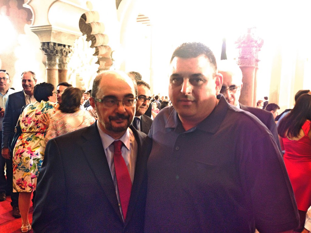 El president del Centro Aragonés de Ripollet, Marcos Gayán, i el tresorer de l'entitat, Víctor Diéguez, van ser convidats a la presa de possessió del nou president del govern d'Aragó, Francisco Javier Lambán.