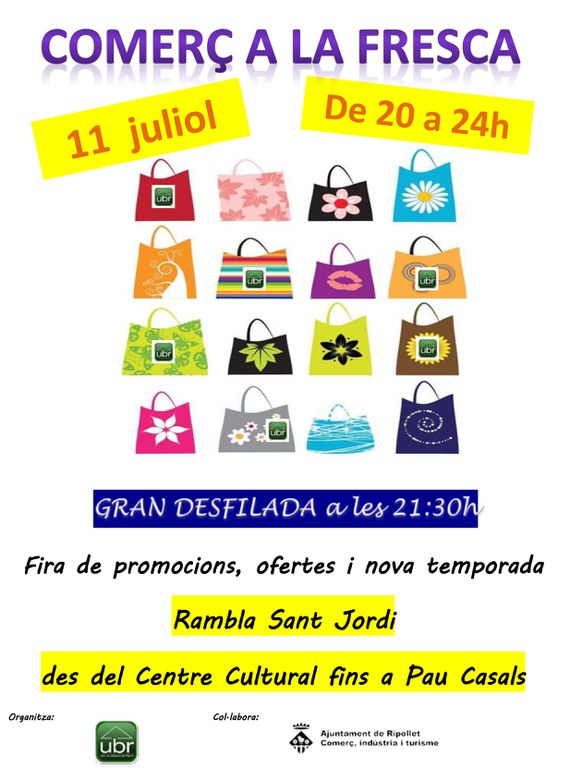 Dissabte, 11 de juliol, la rambla de Sant Jordi s'omplirà a partir de les 20 hores amb una nova edició del Comerç a la Fresca. Es tracta d'un nou Ripostock d'estiu, amb parades de comerços de tot tipus, des del Centre Cultural fins al carrer de Pau Casals.
