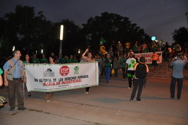 "Demà ens dirigirem a Barcelona, entrarem per la zona que malauradament coneixem com a 'Ciutat Desnonament', és a dir el barri de Ciutat Meridiana, i des d'allà les quatre columnes ens dirigirem cap a l'Arc de Triomf", explicava la nit de divendres José Villacañas, portaveu de la PAH Ripollet. Dissabte a la tarda, es va celebrar un gran acte reivindicatiu a l'entorn de l'Arc de Triomf, amb un dinar popular, diversos parlaments i música en directe.