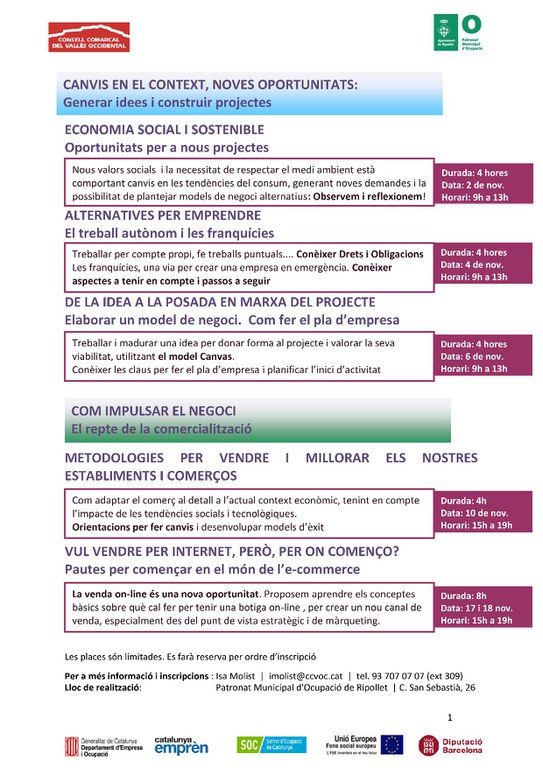 Per al darrer trimestre de l'any, s'han previst les següents accions de formació gratuïtes destinades a emprenedors i empreses: