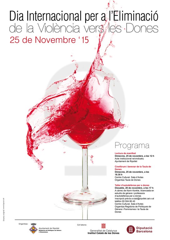 El 25 de novembre es commemora el Dia Internacional per a l'eliminació de la violència vers les dones. Ripollet se sumarà a aquesta celebració amb diverses activitats, organitzades conjuntament per la Regidoria de Polítiques de Gènere i Feminismes i la Taula de Dones. Els actes començaran dimecres, 25 de novembre, a les 12 hores, amb la Lectura del Manifest per a l'eradicació d'aquesta xacra social. L'acte institucional tindrà lloc a l'Ajuntament.