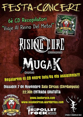 Continuen les activitats amb motiu del 30è aniversari del El programa de rock dur de Ripollet Ràdio, Viaje al Reino del Metal. En aquesta ocasió, s'ha organitzat una festa concert per presentar el 6è CD recopilatori del programa. Tindrà lloc a la Sala Circus de Cerdanyola, el dissabte, 7 de novembre a les 22.30 hores i comptarà amb les actuacions dels joves Mugak, grup amateur de heavy clàssic, amb músics de Ripollet i voltants i la banda de Terrassa de metall progressiu, Rising Core.
