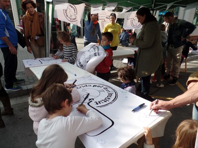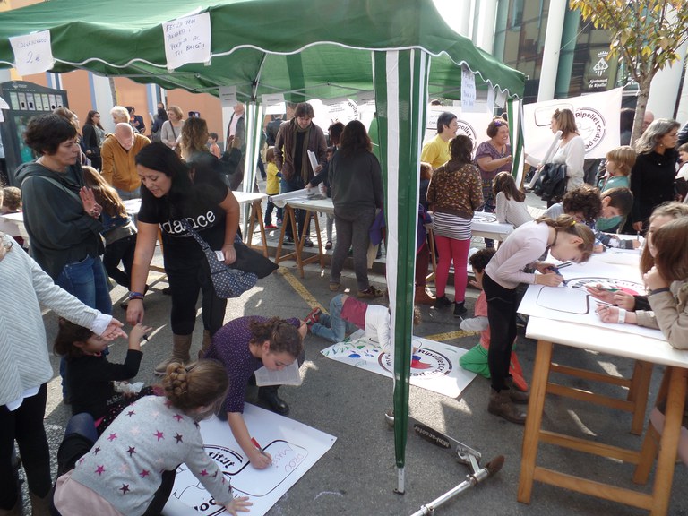 Especialment els més petits van participar a les activitats 'Construïm somnis', on els nens van escenificar la construcció del nou institut amb capses de cartró, i 'estenem el crit', on es van personalitzar pancartes reivindicant un nou centre de secundària. La Plataforma, que va vendre un centenar de pancartes, ha demanat que aquestes es pengin a finestres i balcons arreu del poble.
