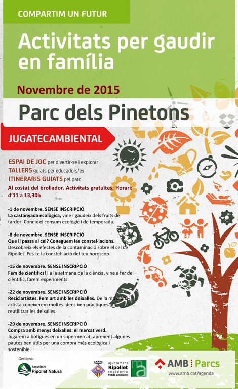 En el marc de la Setmana de la Ciència, que se celebra aquests dies, la Jugatecambiental realitza diumenge 15 de setembre el taller 'Fem de científics!'. Serà, com sempre, al brollador del parc dels Pinetons, d'11 a 14 hores. No cal inscripció prèvia.