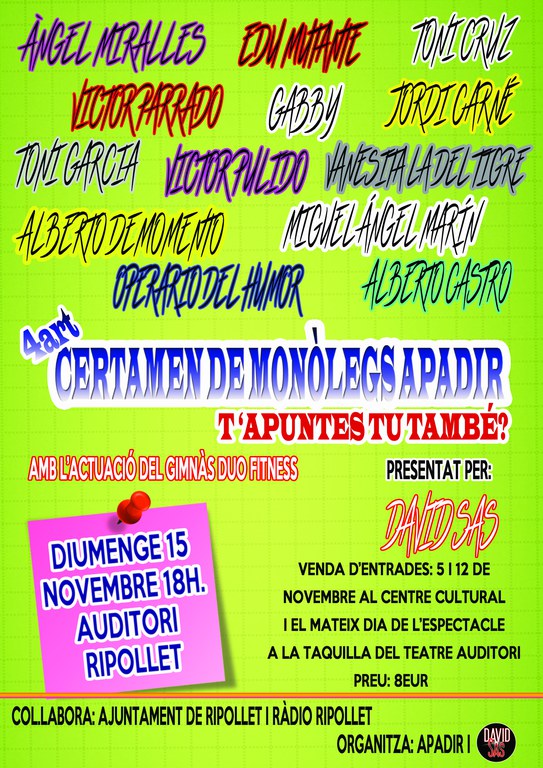 L'entitat Apadir organitza la 4a edició del seu Certamen de Monòlegs