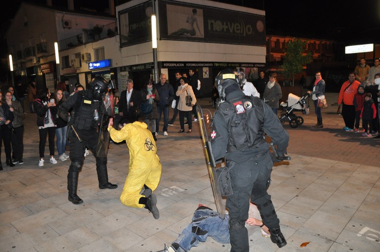 Mor va simular dirigir-se als presents amb un missatge de tranquil·litat i seguretat quan un dels actors li va trencar al cap una suposada ampolla de vidre. A partir d'aquí van ser 7 hores d'intens joc on els supervivents havien d'anar superant proves a les escenes ubicades als edificis més representatius de la ciutat mentre intentaven evitar els zombis, que inicialment eren una cinquantena.