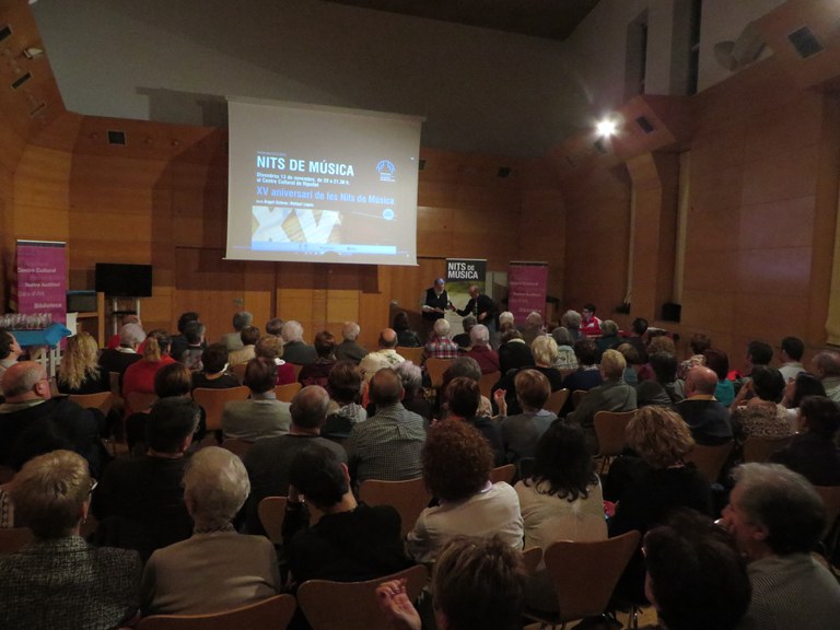 Els assistents, que van omplir en aquest cas la Sala d'actes del Centre Cultural, també van gaudir d'una acurada selecció musical i la projecció de fotos que van repassar les sessions fetes fins ara. La propera sessió de Nits de Música tindrà lloc divendres, 27 de novembre, sobre la història del cinema musical Nord Americà.