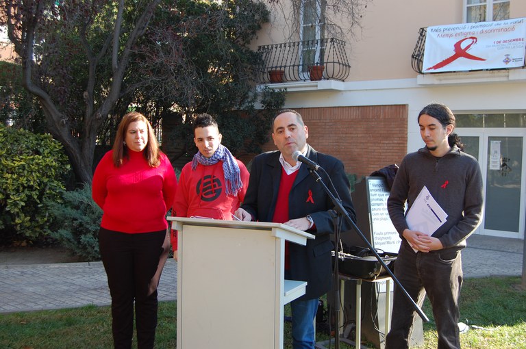 A l'acte també eren presents els regidors de Salut, Joventut i Polítiques LGTBI. Tot seguit s'ha fet el llaç vermell, donat que la majoria d'assistents anaven vestits amb aquest color. La idea és ara compartir la foto a les xarxes socials amb l'etiqueta #LlaçosperlaSida i fer-ne difusió abans, durant i després de l'1 de desembre, Dia Mundial de Lluita contra la Sida. L'activitat és una iniciativa del Comitè 1 de Desembre-Plataforma Unitària d'ONG-SIDA de Catalunya i vol comptar amb la col·laboració de la ciutadania, entitats i administracions de tota Catalunya.
