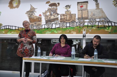 Els assistents van poder debatre sobre el llibre que narra la vida de Català, exposar els seus dubtes o compartir les seves inquietuds amb el dramaturg. Aquest mes, fins a tres grups de lectura de la biblioteca han tractat aquest llibre i l'han treballat en les seves sessions. Per la seva banda, Josep Maria Miró va exposar al públic la seva manera d'entomar aquest projecte i la seva pròpia visió sobre Neus Català. "Era un repte fer l'adaptació teatral; per una banda, tens una novel·la de gairebé 400 pàgines que has de condensar per encabir-ho en una representació d'una hora; però, a més, et trobes amb una persona que ha viscut 100 anys, i que ha vist els moments més significatius del segle XX". Sobre la figura de Neus Català, Josep Maria Miró destaca que "una de les coses més interessants del personatge és que ha fet de la seva vida un acte de militància, i això és una cosa poc habitual; es tracta d'un personatge amb un caràcter i una ètica extraordinaris".