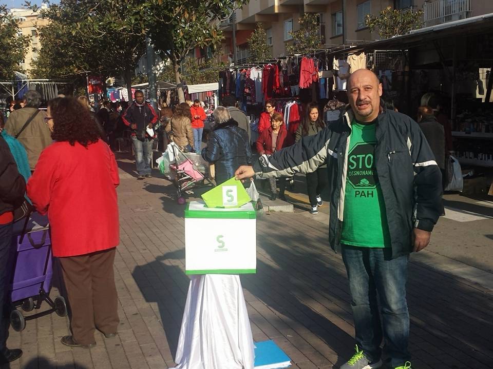 La Plataforma d'Afectats per la Hipoteca va realitzar aquest dimecres, 9 de desembre, al mercadal de Ripollet una acció informativa dirigida a totes les formacions polítiques de cara a les eleccions general del proper 20 de desembre. Aquesta acció s'inclou a la campanya 'Sense les 5 de la PAH, jo no us voto', que porten a terme del 9 al 18 de desembre. El dia 19, dia de reflexió, a les 11 del matí, sortiran al carrer arreu de l'Estat per a realitzar una acció sorpresa a la què han convidat a tota la ciutadania.