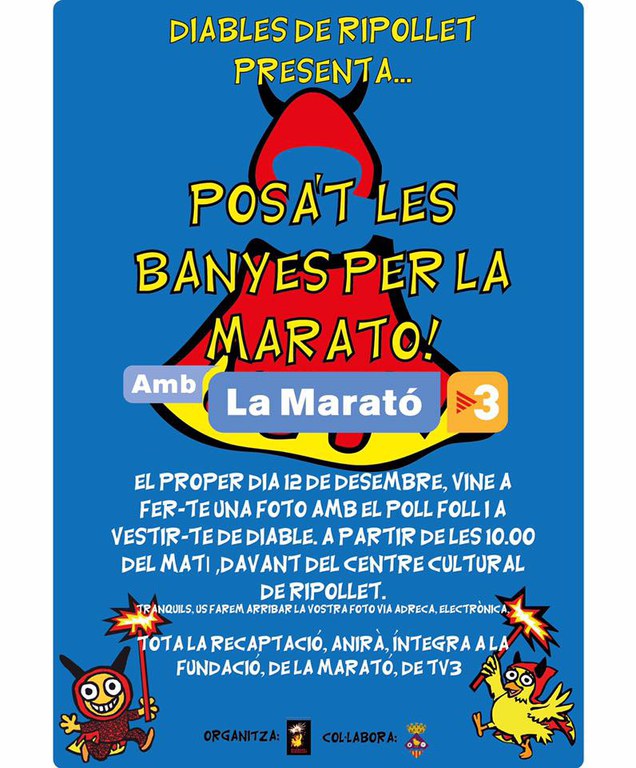 Posa't les Banyes per La Marató! Els Diables de Ripollet ofereixen la possibilitat de vestir-se de Diable i fer-se un foto amb la seva Bèstia de Foc, el Poll Foll. Posteriorment l'entitat li farà arribar al participant. Cada imatge serà un 1 euro de donació, a més els Diables donaran una part de la recaptació del Quinto del dia 13.