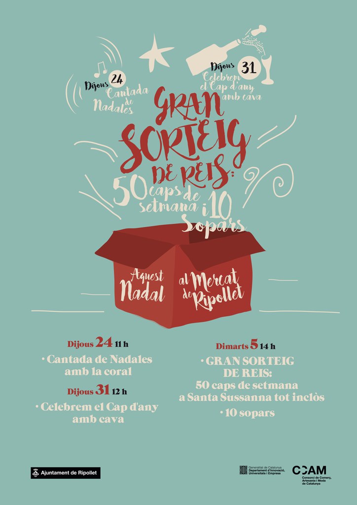 Per altra banda, l'Associació de Concessionaris del Mercat Nou ha organitzat una nova edició de la 'Pluja de pernils'. Dissabte, 9 de gener, a les 14 hores sortejaran 10 pernils i 10 lots de vi. Finalment, els paradistes del mercadal setmanal sortejaran tres vals de compra per valor de 100 euros cadascun.