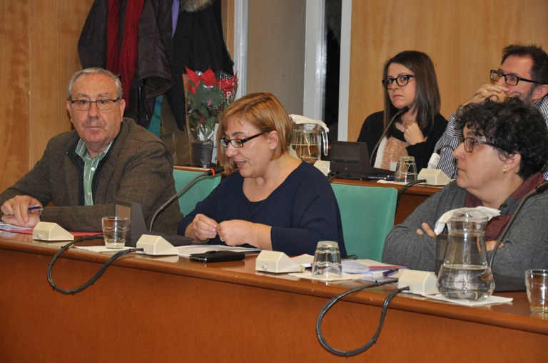 Fotos: Imatges de la mesa del Ple, del grup municipal del PSC i de Xavier Peñarando, de CiU.