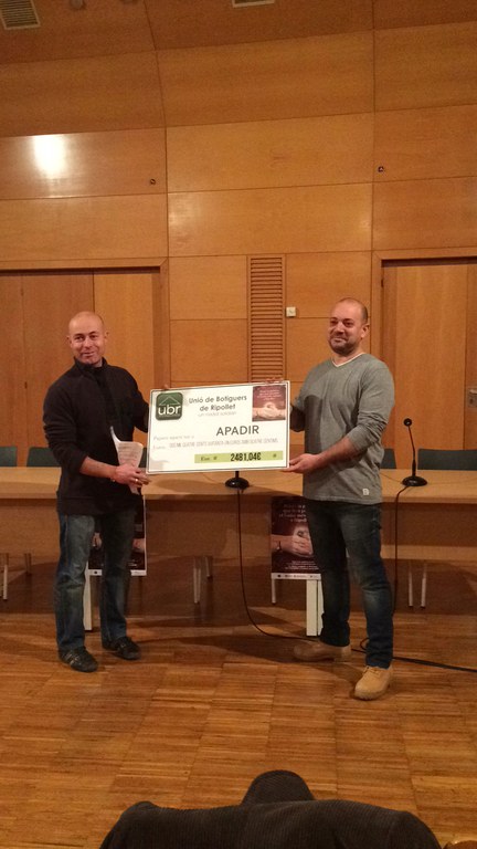 La Unió de Botiguers de Ripollet (UBR) va entregar dissabte, 23 de gener, els diners recaptats durant la campanya de venda de polseres solidàries. Finalment, s'han recaptat un total de 2.481,04 euros que s'han entregat a l'entitat Apadir per a desenvolupar els seus projectes.