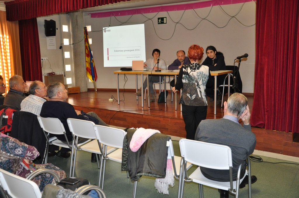 El govern municipal està realitzant diferents presentacions i audiències públiques sobre l'esborrany del Pressupost Municipal 2016, abans de la seva propera discussió plenària. Així, la setmana passada es va presentar a les entitats veïnals i el passat dissabte, 30 de gener, en audiència pública al Casal d'Avis. Aquest dimarts, a les 19.30 hores, es farà la segona audiència a l'AV Can Vargas. En aquestes trobades, la primera tinent d'alcalde i regidora d'Hisenda, Pilar Castillejo, va explicar als presents la proposta econòmica i la nova organització de l'Ajuntament per aplicar els canvis que el nou govern vol dur a terme. Per la seva part, els veïns i representants d'entitats assistents van poder preguntar i fer aportacions, que seran estudiades per a la seva inclusió a la proposta final. Castillejo va destacar que es vol destinar més recursos a ocupació, cultura, ajuts socials i al manteniment de les escoles. Quant a inversions, va avançar que enguany el govern vol tancar la compra de l'antic Celler Cooperatiu per fer-hi un nou centre cívic per Can Tiana-Pont Vell, fer millores als camps de futbol i i al carril bici, entre altres.