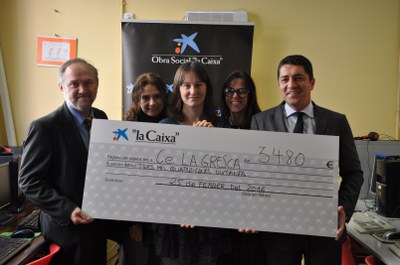 L'entitat bancària Caixabank ha lliurat 3.480 euros a La Gresca per donar un impuls al projecte Apptiva't, que començarà a caminar en els propers dies. "A nivell de cada població, les diferents oficines i els directors tenim la vocació de cercar entitats i projectes que puguem ajudar, i estem orgullosos de poder col·laborar en aquest projecte que incideix en els nostres veïns", explica Jordi Vallespí, Director de l'oficina del Mercat. Per altra banda, Agustí Cañellas, Director d'Àrea de Negoci de la zona, ha destacat l'increment del pressupost anual de la Fundació La Caixa en projectes socials: "Aquest any Caixabank ha incrementat aquest fons de 500 milions d'euros a 550 euros, el nostre objectiu sempre és col·laborar amb la societat i felicitem La Gresca per la feina que fan cada dia al barri".