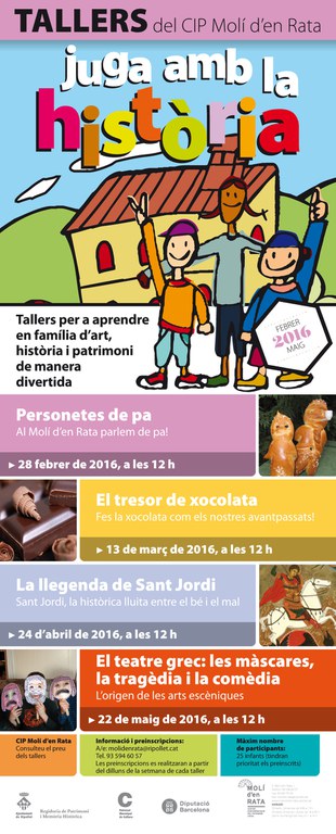 El Centre d'Interpretació del Patrimoni Molí d'en Rata organitza aquest diumenge, 13 de març, un nou taller familiar dins del cicle Juga amb la Història. Sota el títol El tresor de xocolata, els participants faran una aproximació a la història d'aquest dolç menjar. L'activitat començarà a les 12 hores. Les inscripcions es poden formalitzar fins divendres al telèfon 93 594 60 57, mitjançant el correu electrònic molidenrata@ripollet.cat, o el mateix dia a la recepció del CIP, si encara queden places.