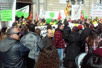 Foto: Acció reivindicativa de la Fapac a Barcelona (imatge de Fapac).