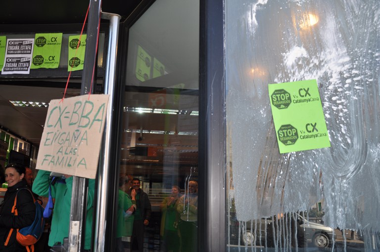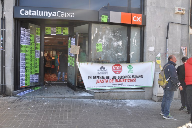 Aquest dijous, 10 de març, la Plataforma d'Afectats per la Hipoteca (PAH) de Ripollet ha iniciat una acció reivindicativa a les oficines de Catalunya Caixa (CX) de la rambla de Sant Jordi, 8. Els membres de la PAH han empaperat tota la façana de l'entitat i han ocupat el seu interior, aturant l'activitat dels seus treballadors. Els membres de la PAH han estat dialogant al mateix carrer amb el director de la sucursal, que ha escoltat les seves reivindicacions i les ha transmès a la direcció de l'entitat bancària.