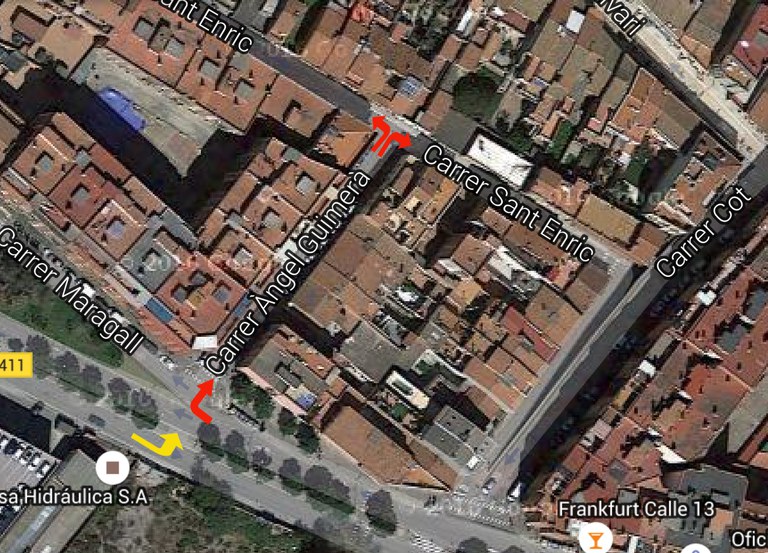 La prova consisteix en canviar de sentit el carrer Àngel Guimerà, de manera que en arribar al carrer de Sant Enric es pugui girar tant a la dreta com a l'esquerra (veure foto). A més, es demanarà pressupost del cost d'una instal·lació semafòrica en la cruïlla entre els carrers Àngel Guimerà i Maragall, per tal de permetre el pas segur de vehicles del carrer de Balmes), en sentit Montcada, cap a Àngel Guimerà (fletxa groga) sense necessitat d'anar a la rotonda del carrer de Molí, com fins ara. Però, tal i com va explicar Sánchez, aquesta actuació no està prevista al pressupost de 2016 i no es podrà realitzar a curt termini.